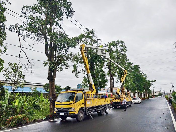 31日,电台在高雄大寮区上寮路展开抢修。(图/台电)