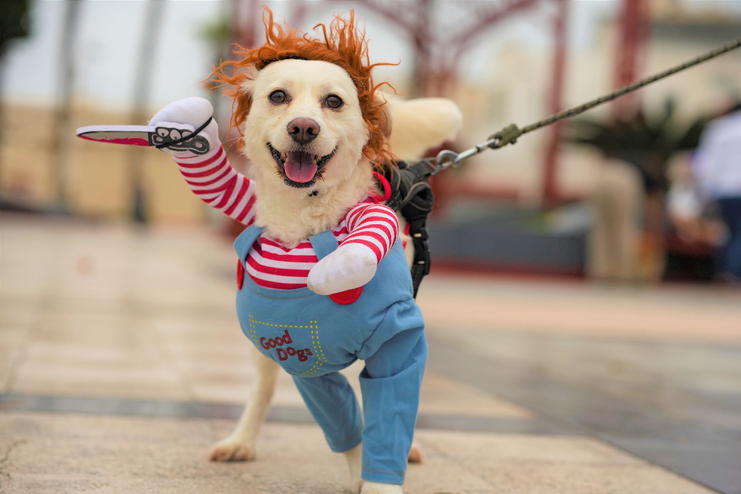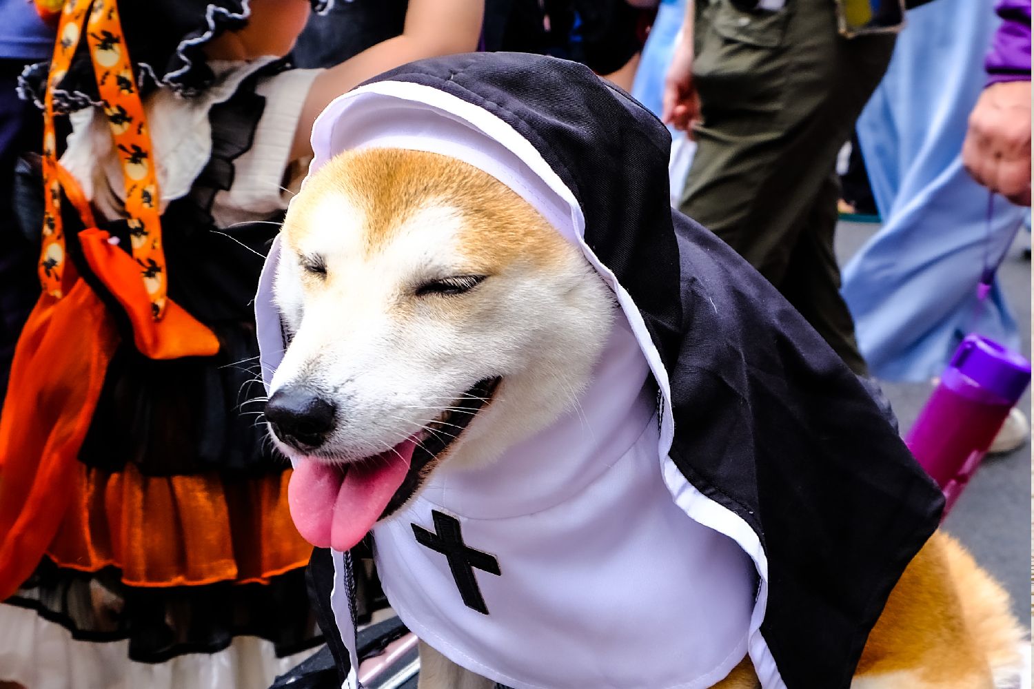 图为10月26日,“2024府中搞什么鬼”万圣节活动在中国台湾新北市板桥府中商圈盛大登场,狗狗盛装出席。( 香港中通社)