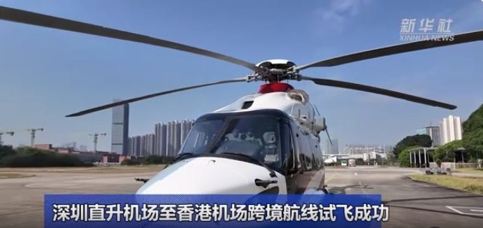深圳南头直升机场至香港国际机场的直升机跨境航线试飞近日完成,飞行时间仅为15分钟。(图/新华社视频截图)