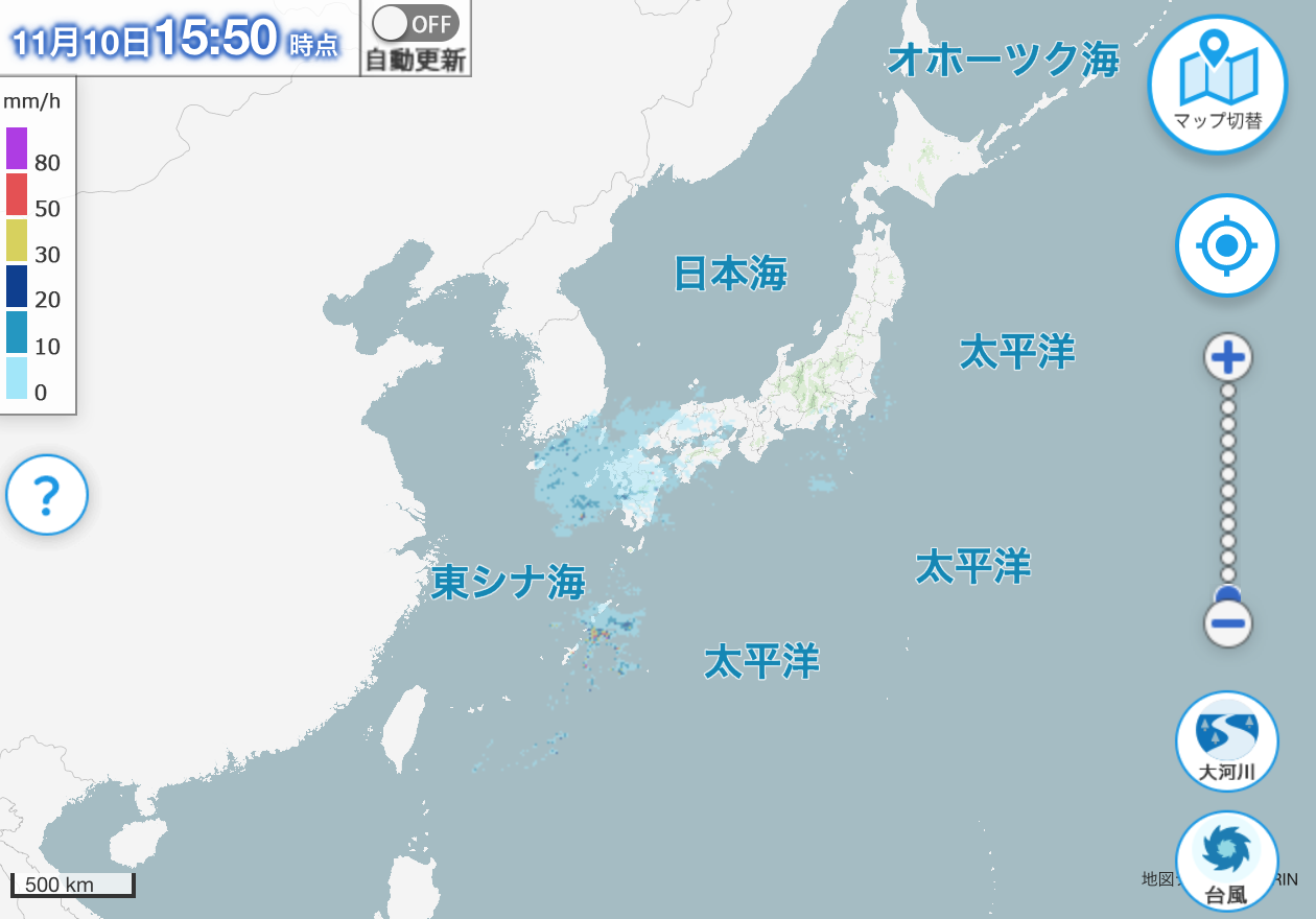 由于到现在为止的雨,冲绳县本岛北部的一部分和鹿儿岛县的与论岛和冲永良部岛的泥石流灾害的危险性非常高,发表了“泥石流灾害警戒信息”。预计冲绳·奄美10日夜间大气将持续非常不稳定的状态,之后一段时间局部地区可能会伴随雷雨而下非常大的雨。到11日中午为止的24小时降雨量都很多