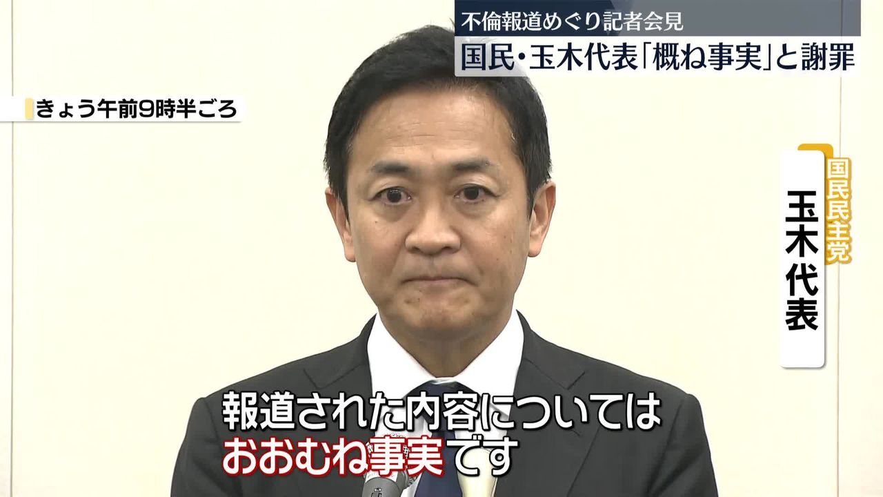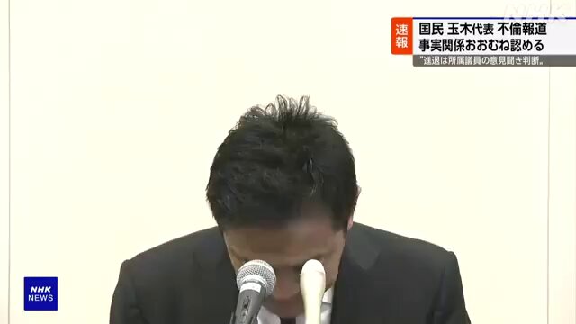 11月11日,媒体《SmartFlash》报道了玉木代表疑似与担任日本高松市观光大使的女性存在不伦关系。对此,玉木于11日上午举行了临时记者会,表示:“报道内容大致属实。对此不仅向家人,也向所有支持我的全国人民深表歉意,真的非常抱歉。”