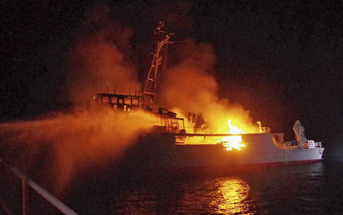 (亚太快讯)据NHK报道,10日在日本福冈县近海航行的海上自卫队扫雷艇“宇久岛”发生火灾。11日凌晨0点过后,该船体翻覆火势熄灭,目前仍有一名队员失踪,自卫队与海上保安厅正在搜救中。