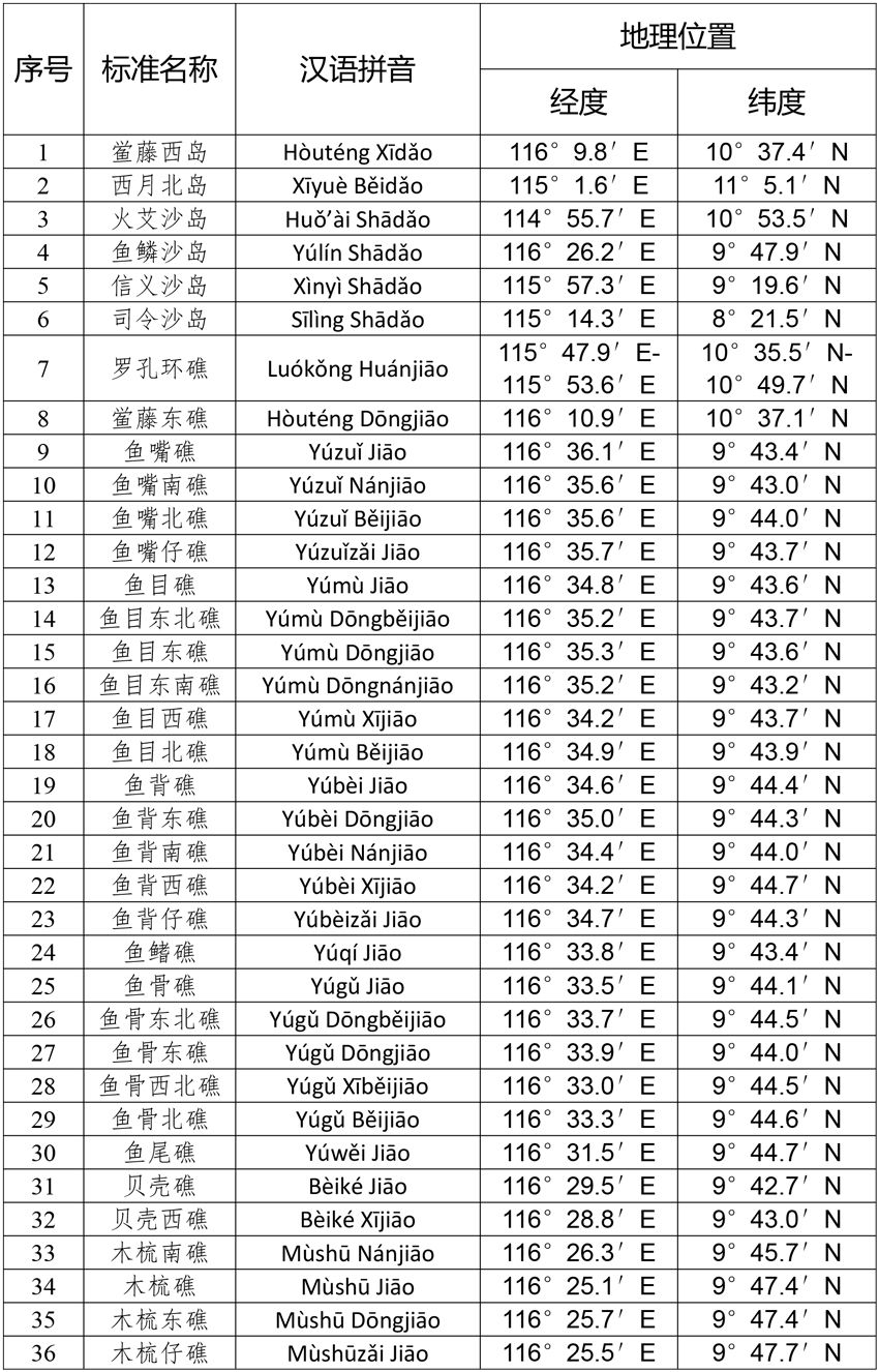 中国自然资源部、民政部11月10日发布关于公布中国南海部分岛礁标准名称的公告。