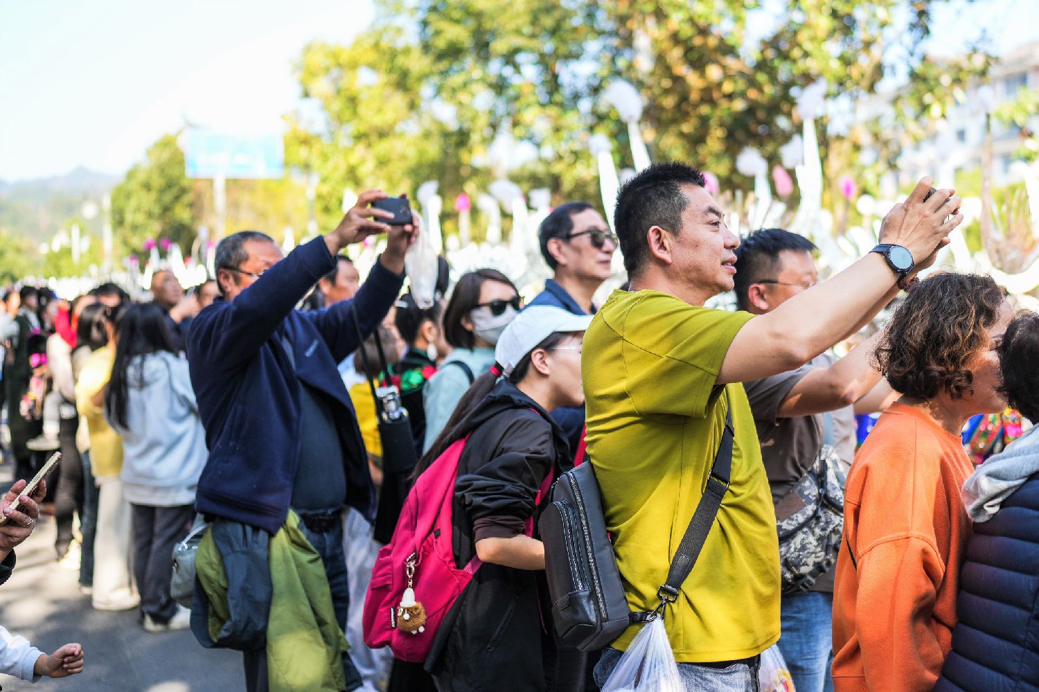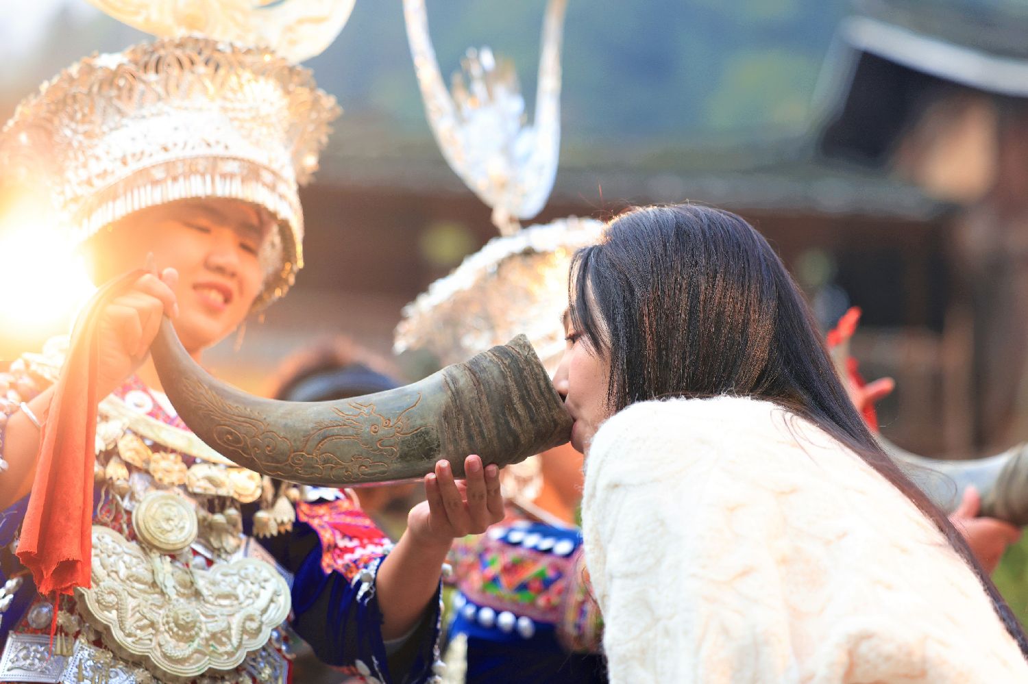 图为11月10日,游客在雷山县参加苗年欢庆活动。(新华社)