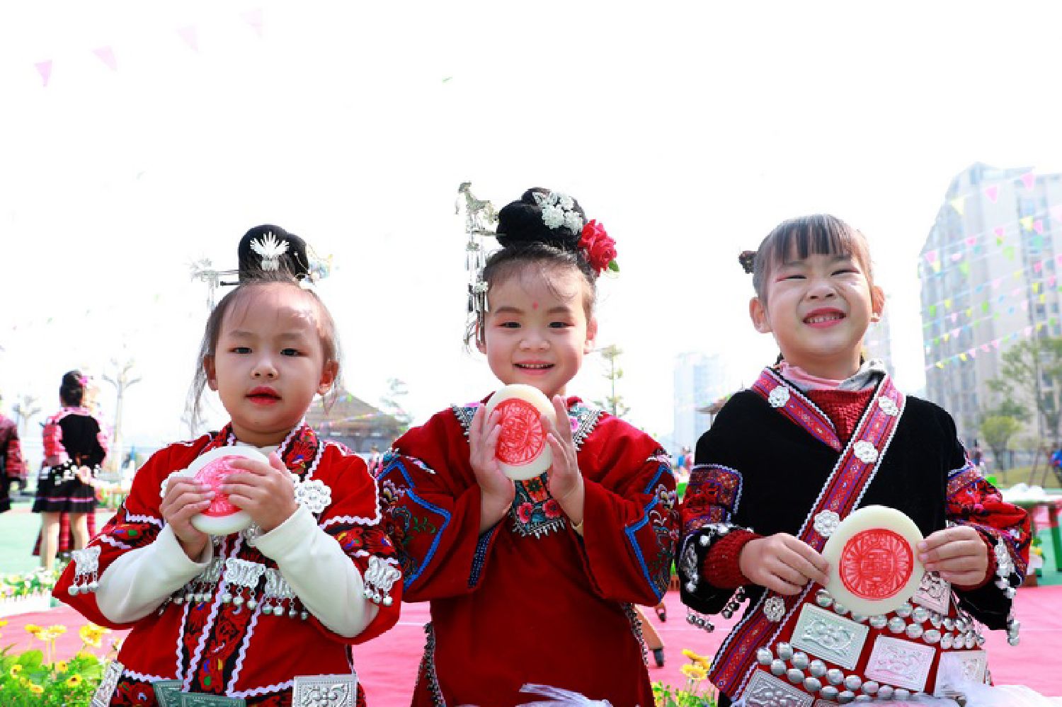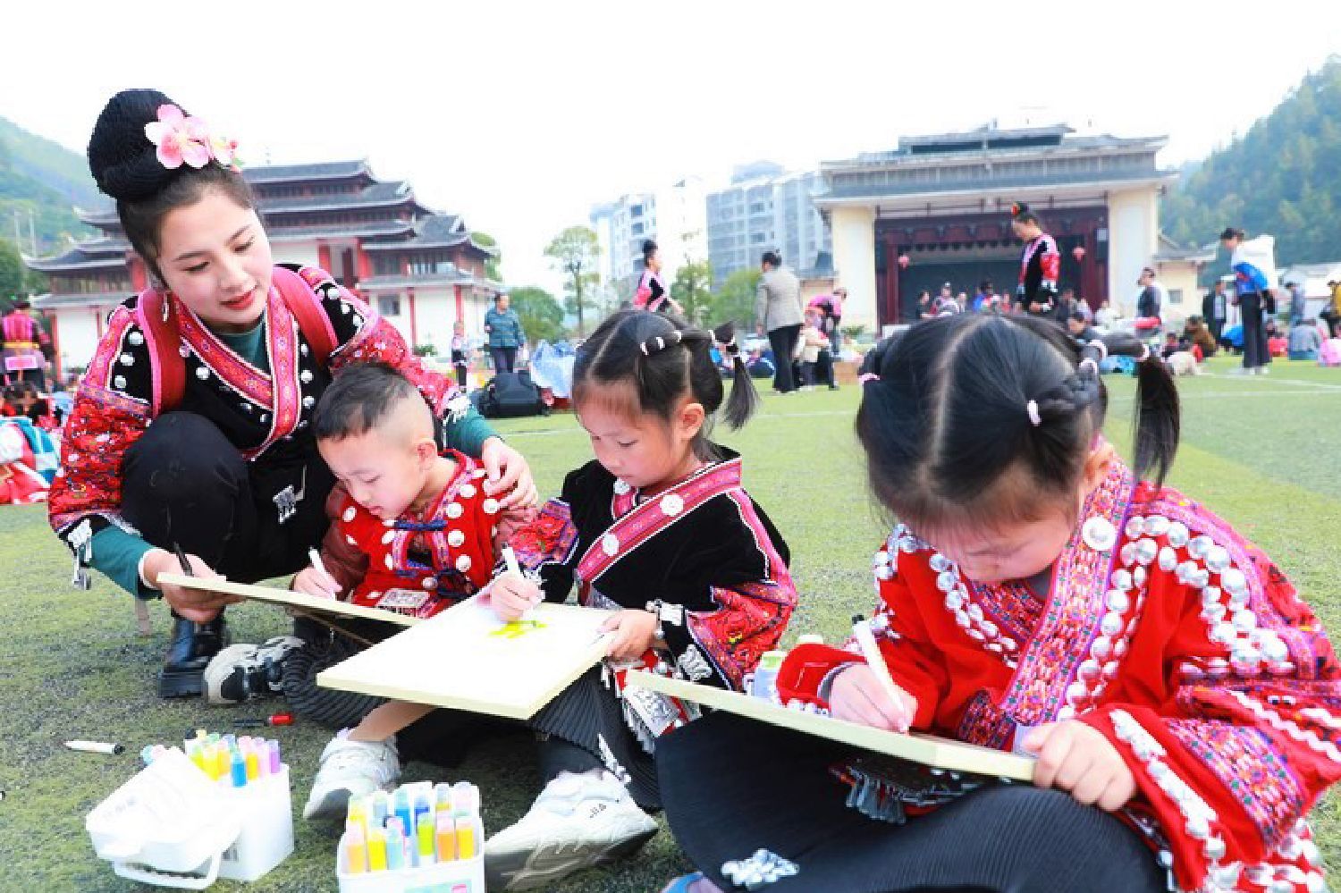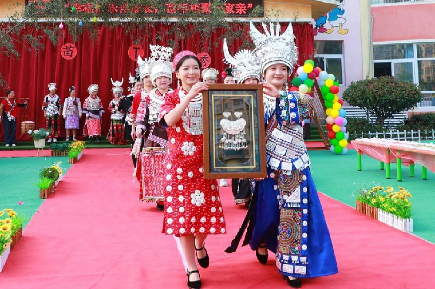 图为11月6日,苗年节前夕,贵州省黔东南苗族侗族自治州剑河县城关第二幼儿园欢庆苗年盛况空前,花样繁多的活动汇聚童趣无限,幼儿园的萌娃们在家长和老师的陪伴下快快乐乐过苗年。(人民网)