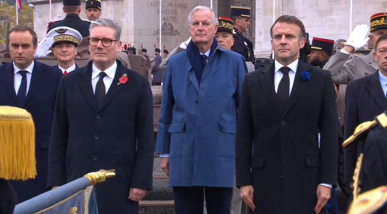 当地时间11月11日,法国举行一战停战日纪念活动,纪念第一次世界大战结束106周年。法国总统马克龙与到访的英国首相斯塔莫共同出席纪念仪式。