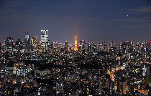 日本东京涩谷,鸟瞰东京港区都市夜景。(视觉中国)