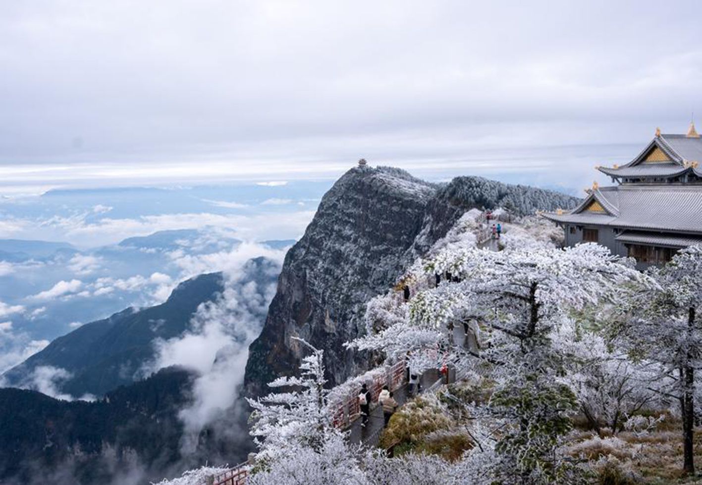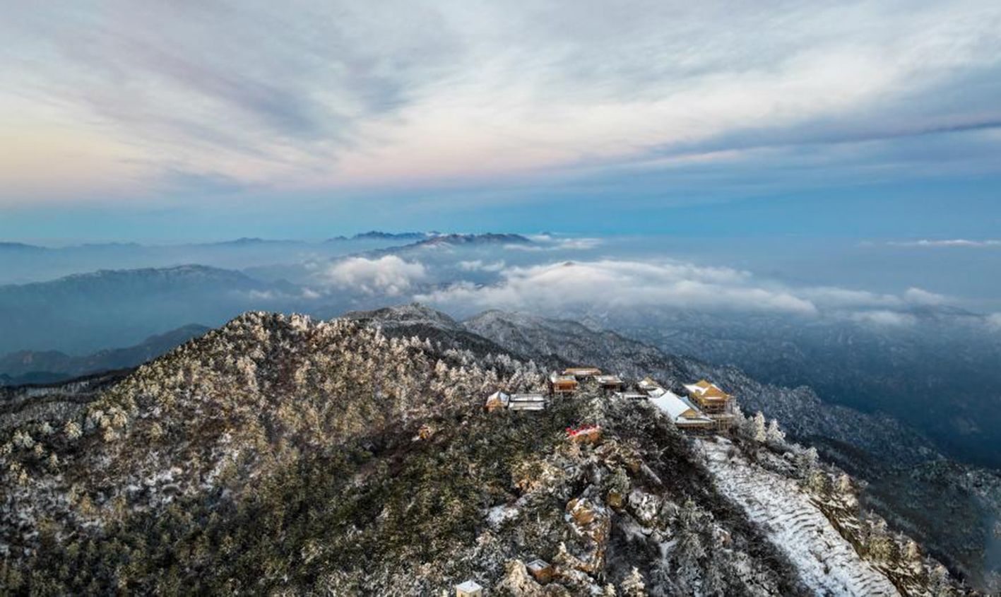 11月20日,雪后峨眉山金顶一角。近日,峨眉山迎来今冬第一雪,奇峰、林海、云雾与冰雪绘就了一幅幅银装素裹的美丽画卷。(新华社)