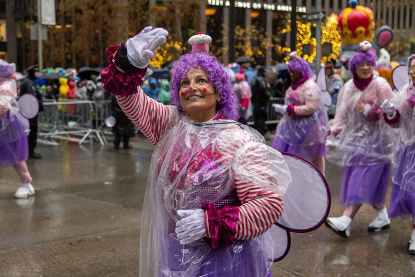 当地时间11月28日,第98届梅西百货感恩节大游行在美国纽约雨中举行。作为全美规模最大的感恩节庆祝活动,梅西百货感恩节大游行常被人们视作美国节日季到来的标志。图为全新亮相的米妮巨型气球。(中新社)