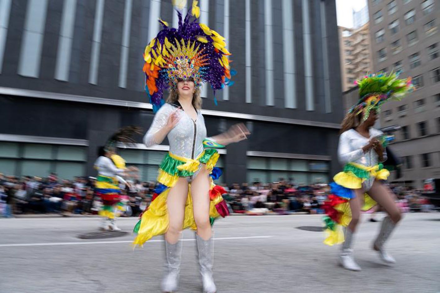 11月28日,表演者在美国休斯敦参加感恩节游行。(新华社)