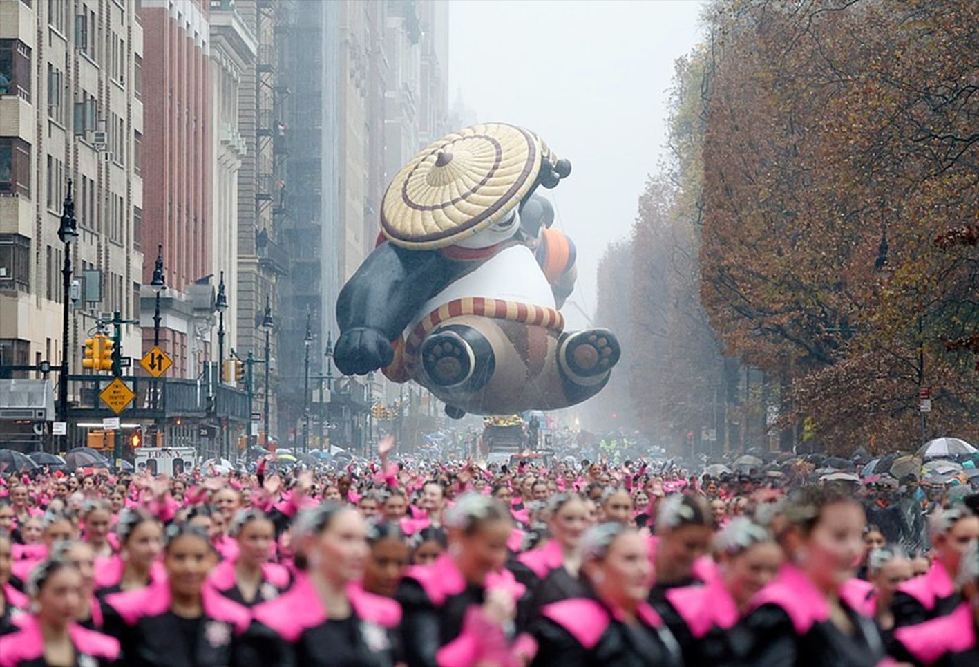 11月28日,美国纽约梅西百货感恩节卡通气球游行。图为功夫熊猫巨型气球。(CFP)