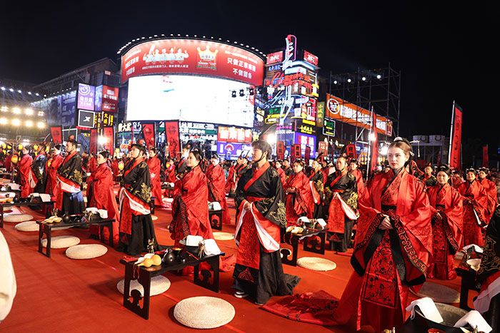 为再现大汉婚典庄严典雅的氛围,主办方和执行承办团队严格以周礼婚制为蓝本,注重细节打造。如新人的婚服样式严循古制,采用喻义高贵与阴阳调和的黑红配色,服饰纹样均源自马王堆文物的经典刺绣图案;现场“迎亲”所用的铜锣,来自台湾享有盛名的林午铁工厂;乐团演奏的钟鼓大乐则是复刻自宁乡炭河里出土的商代大铙等。