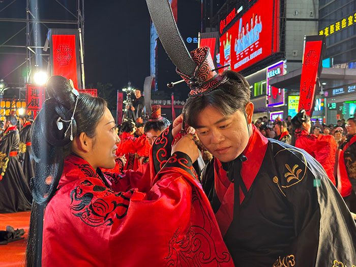 湖南“大汉婚典”至今已举办四届,参与人数和场景规模均有大幅提升。本次活动策划人、大陆配偶杜雨珊说,此次中国台湾新人、跨国夫妇与湖湘爱侣等齐聚一堂,也传递了“两岸一家亲”“全球一家亲”的美好祝愿。