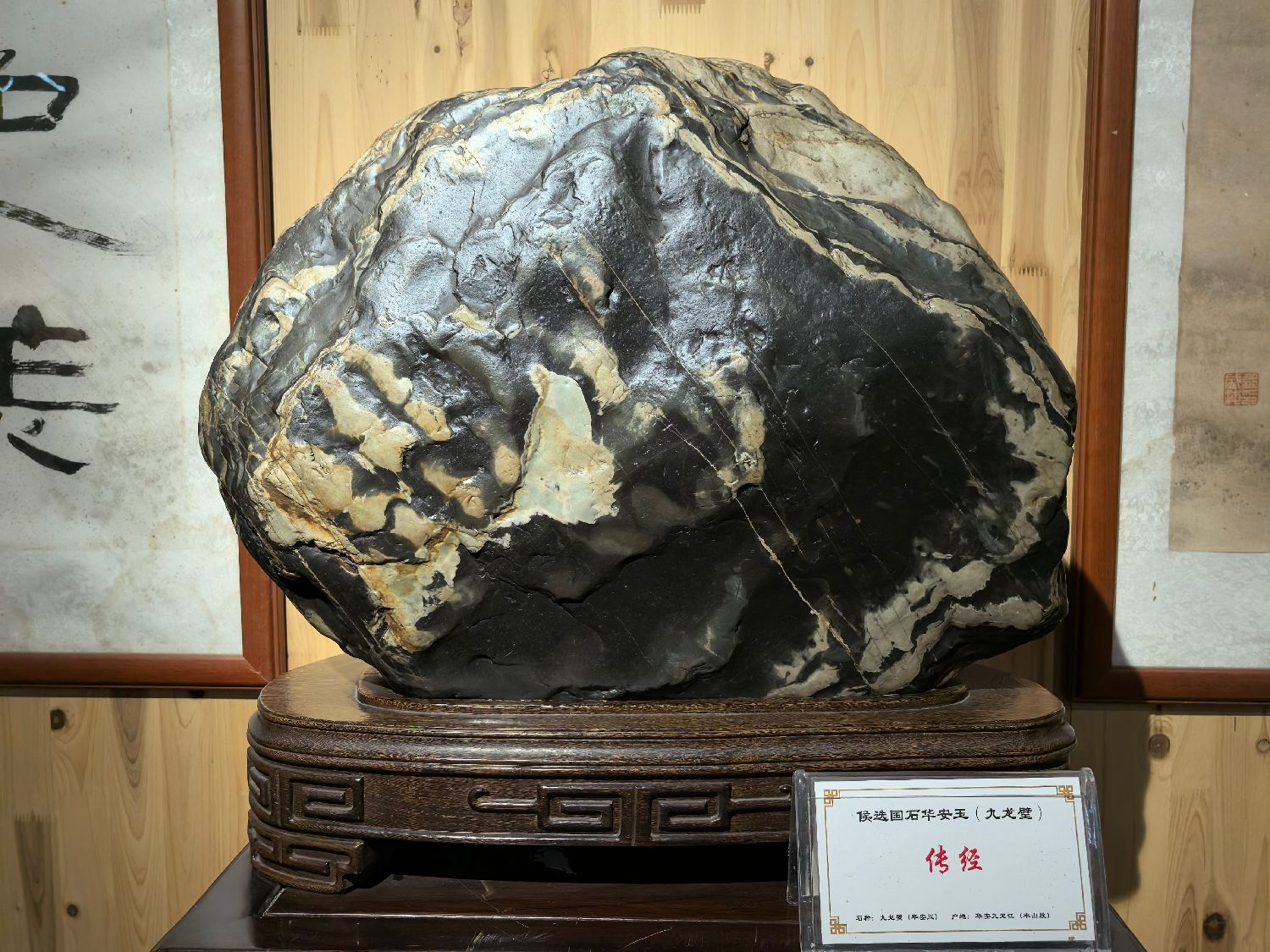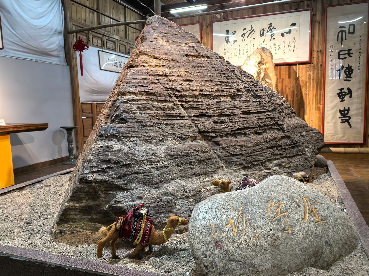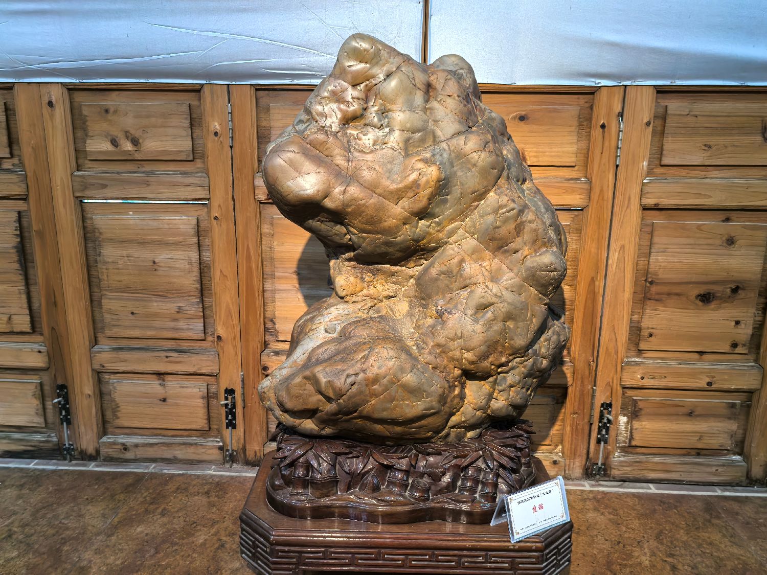 华安奇石博物馆收藏藏品598件,设有罗汉、景观、人物、图案区等十二个展区。图为博物馆内陈设藏品“金字塔”。(万鲤 摄)