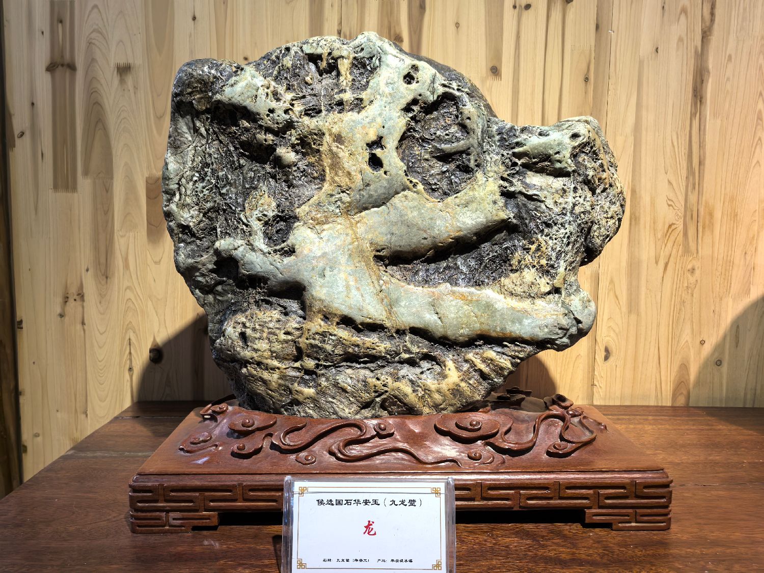 华安奇石博物馆成立于2007年,面积1680平方米,是福建省最大最专业的天然奇石博物馆之一,主要收藏华安玉天然奇石。华安玉又称九龙壁,学名为“条带状钙硅质角岩”,独产于九龙江北溪流域华安境内。华安玉曾入选中国“十大国石候选石”,被评为“中华四大名玉”之一,被确定为“八闽名石”“漳州市石”。图为海外华文媒体代表参观博物馆内的精美藏品。(万鲤 摄)