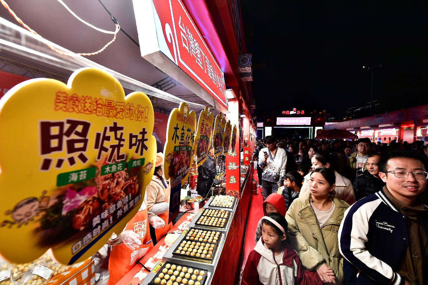 台湾花园夜市铜锣烧、台湾深坑泡菜臭豆腐、台湾拇指生煎包……当地时间6日晚,“食尚两岸·香聚沙县”海峡两岸美食展在福建省三明市沙县区启幕。