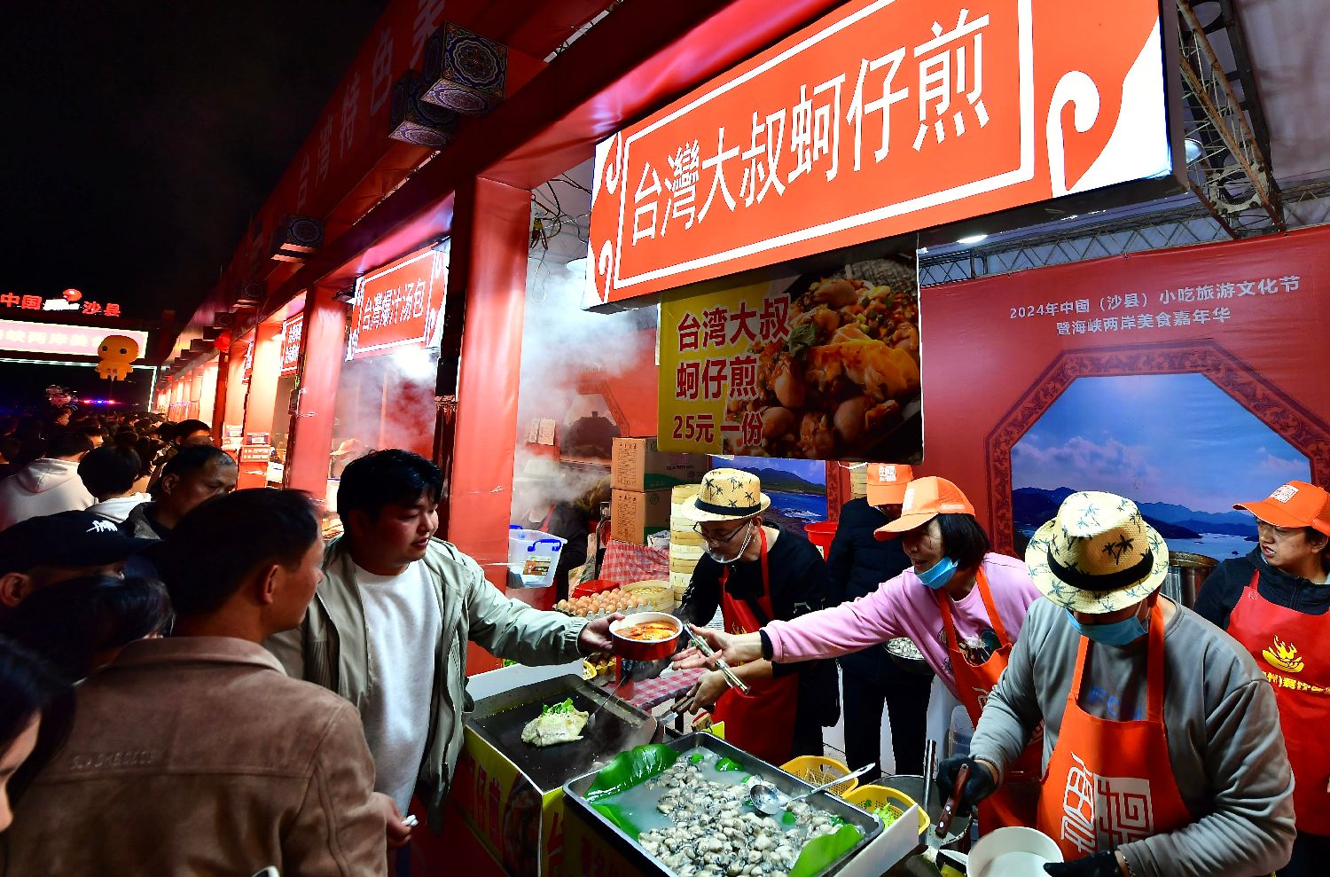 “我们将台湾传统小吃带来沙县参展,是希望能够透过此次展会,在口味上更加精进,以符合大陆食客的要求。”在台湾大叔蚵仔煎摊位上,来自台湾的蔡亦家不停为蚵仔煎翻面。摊位前,已有很多民众排队等候美食。