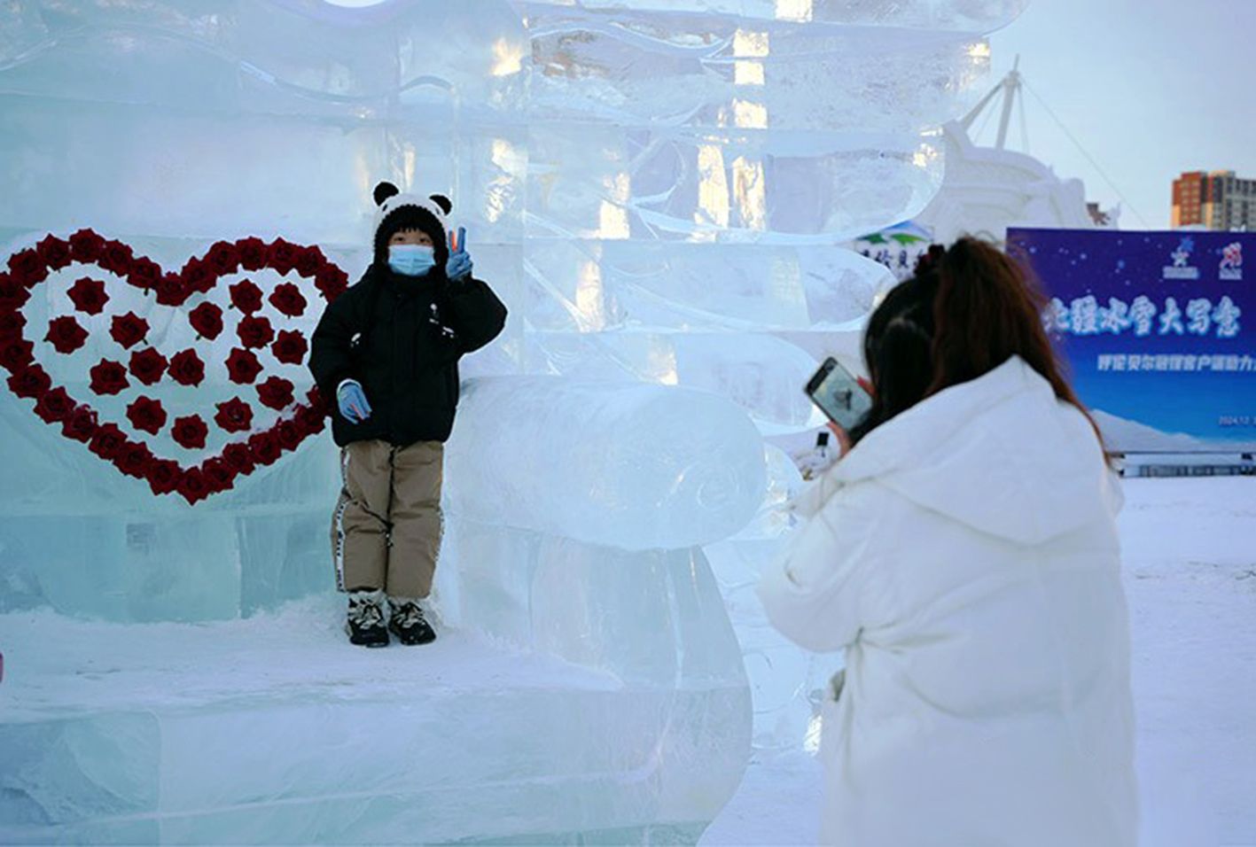 12月8日,“‘趣’探冰雪世界 乐游呼伦贝尔”大众冰雪季主题采访活动在呼伦贝尔市启动。图为市民在伊敏河冰雪嘉年华打卡。(人民网)