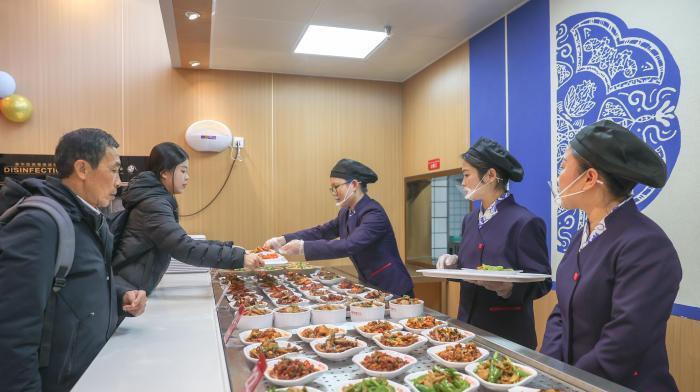 北京时间9日中午,在餐厅内,只见一份份热气腾腾的小碗菜被整齐摆放在保温台上,菜品种类丰富具有江西特色,全都明码标价。“结合赣鄱小炒特色,我们推出了南昌米粉肉、宁都三杯鸡、井冈山烟笋炒肉、莲花血鸭等具有地方风味的江西特色菜,价格一般在12元(人民币,下同)至32元之间,还为有需求的旅客提供了套餐服务。”江西南铁商务旅行服务有限公司经营管理部副主任刘冰玉介绍,南昌西站“赣鄱智慧印记”热链主题餐厅餐食供应,主要有堂食和送餐上车两种方式。目前已提供堂食供应,预计12月下旬起,逐步提供送餐上车服务。