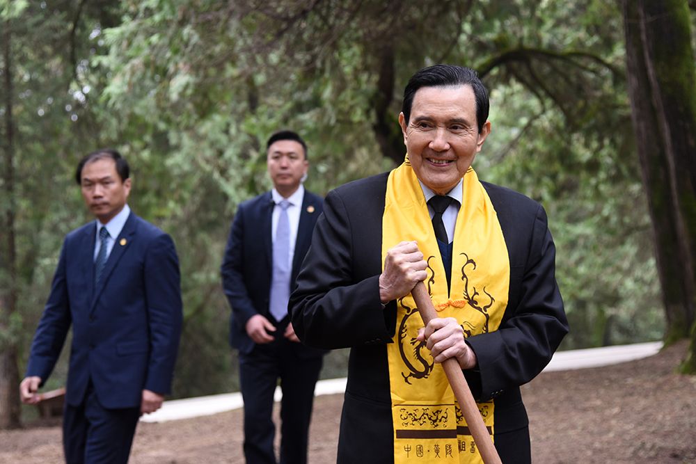 今年4月4日,马英九率台湾青年在陕西黄陵参加甲辰(2024)年清明公祭轩辕黄帝典礼。图为马英九种植桥山柏。(图/中新社)