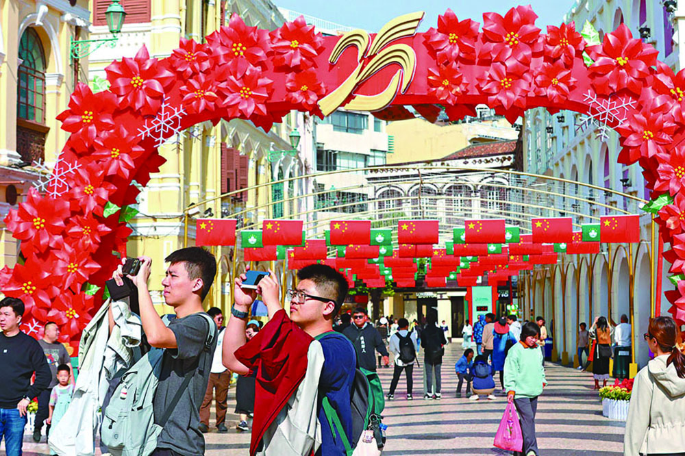 回归中国25周年纪念日临近,澳门四处红旗飘扬。(图/香港《文汇报》)