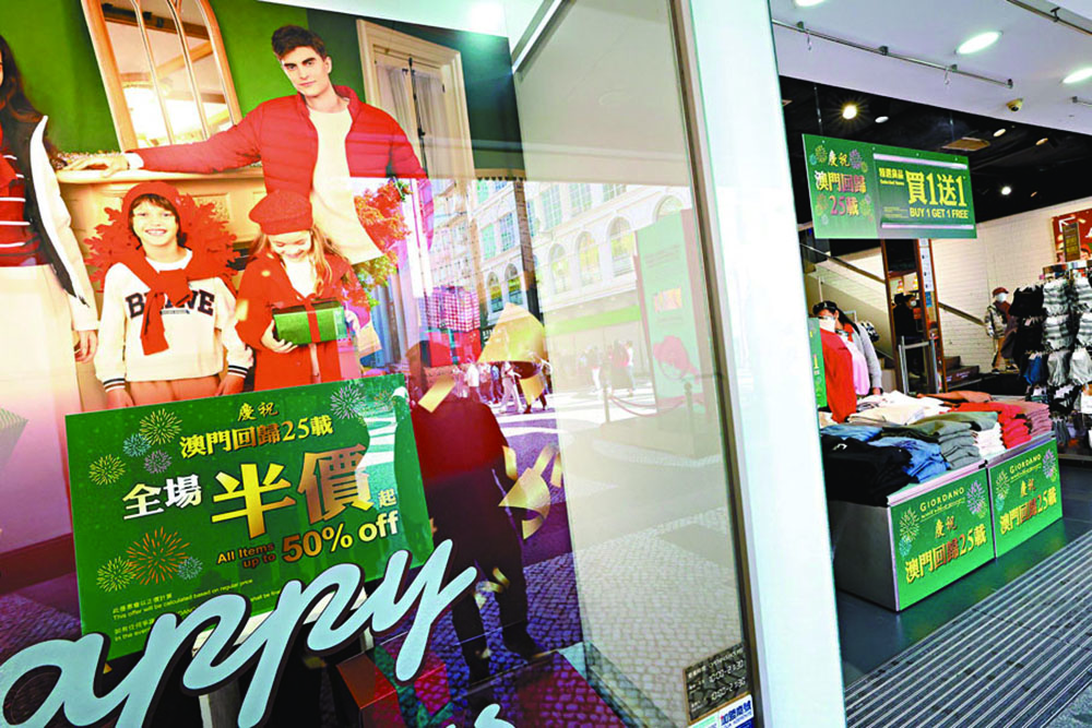 澳门服装店推出全场半价或精选货品买一送一的活动。(图/香港《文汇报》)