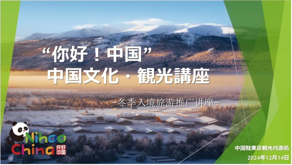 2024年12月14日,中国驻东京旅游办事处前往北京语言大学东京校,举办“你好!中国”冬季入境旅游推广活动,为来自全世界及日本本土的北京语言大学东京校学生及中文学习爱好者们带来了一场结合“文旅+冰雪”元素的别样主题讲座。