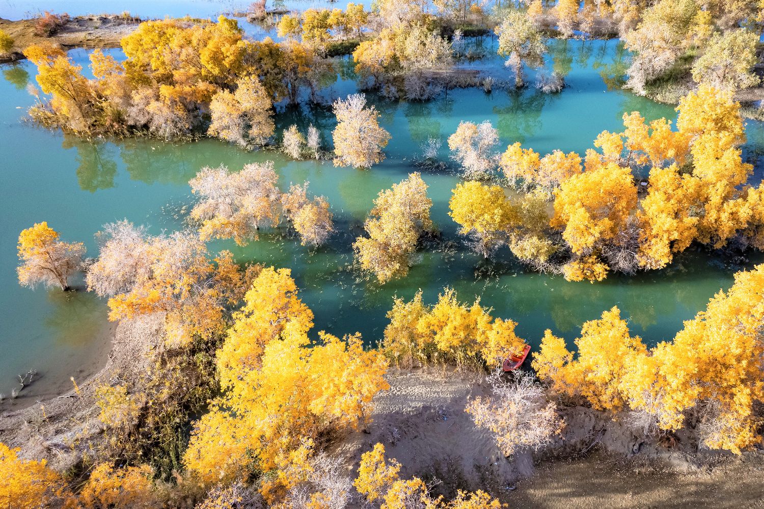 图为新疆阿克苏,塔克拉玛干沙漠遍布胡杨。(CFP)