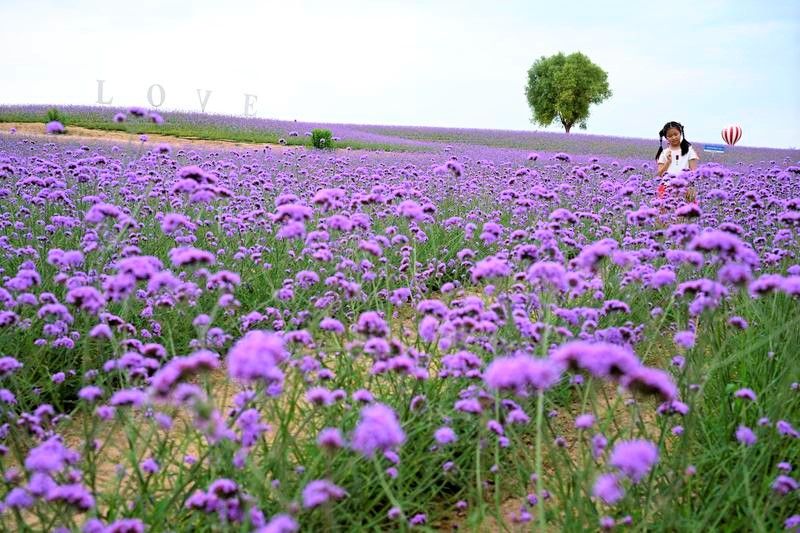 图为宁夏银川薰衣草庄园,这片“花海”曾经是寸草不生的沙漠戈壁。近年来宁夏薰衣草庄园通过改良荒漠土地,种植马鞭草、九叶菊、薰衣草等花卉以及樟子松、新疆杨等20余种树木,让昔日的荒漠戈壁变身绿洲“花海”。(新华社)
