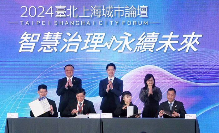 “2024上海台北双城论坛”17日登场,上海市和台北市签署有关交流合作备忘录。(图/ 台北中时新闻网)