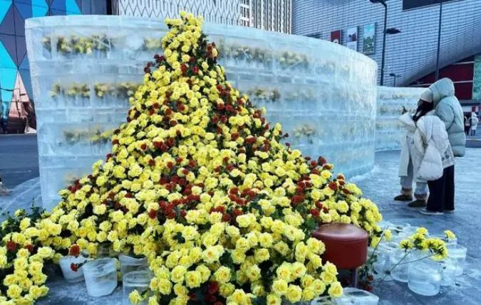 综合《哈尔滨日报》、武汉极目新闻、哈尔滨东北网等报道,近日,哈尔滨在哈西万达广场举办了冬日限定活动。该活动以其独特的透明冰雕黄玫瑰吸引了众多游客的目光,成为当地的热点。