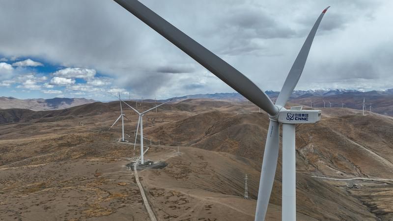 10月17日拍摄的位于西藏日喀则市萨迦县的风力发电机组。(图/新华社)