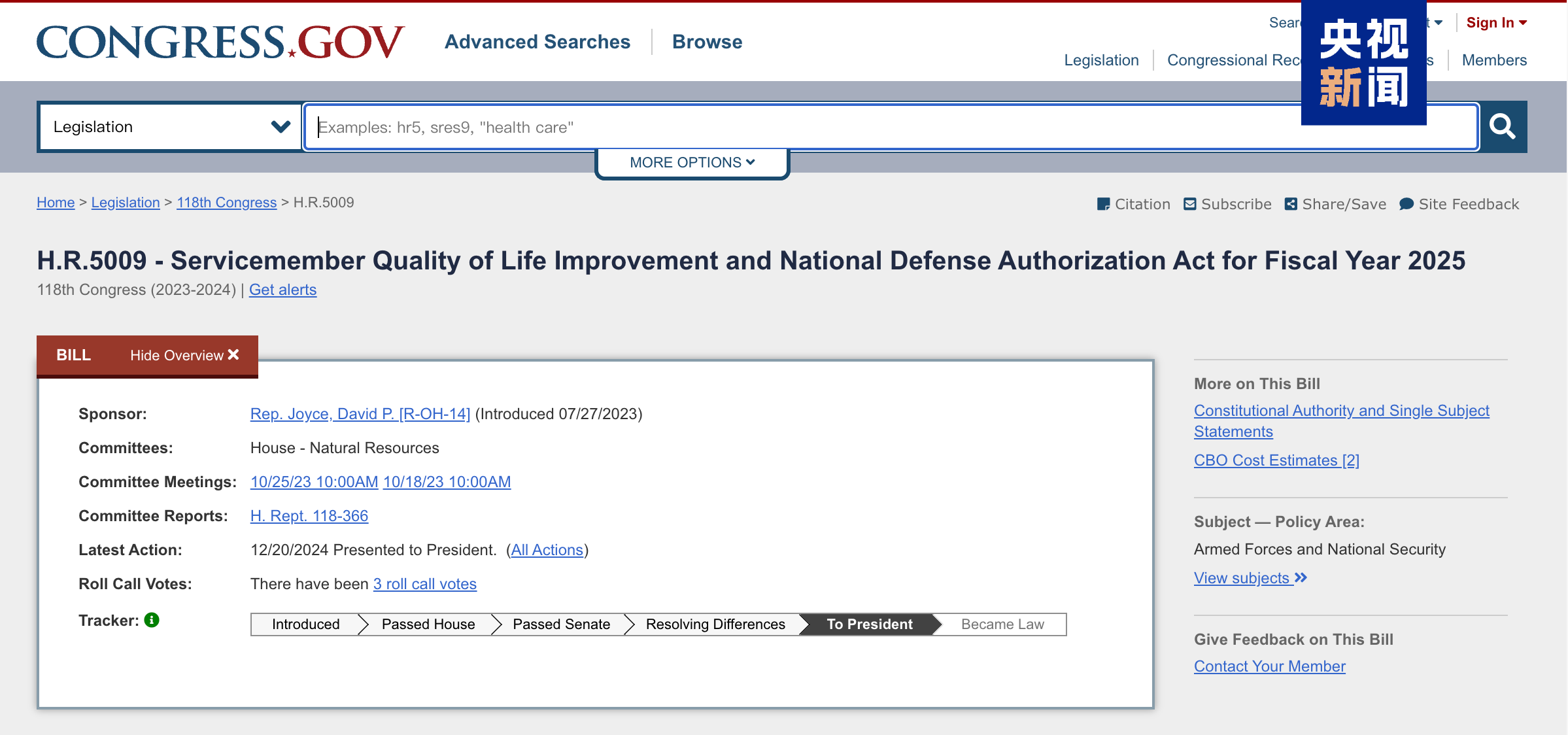 这样的交易在美国政治史上的确不是第一遭。但值得注意的是,就在此前一天,即12月19日,美国参议院通过了《HR5009-2025财年军人生活质量改善和国防授权法案》。