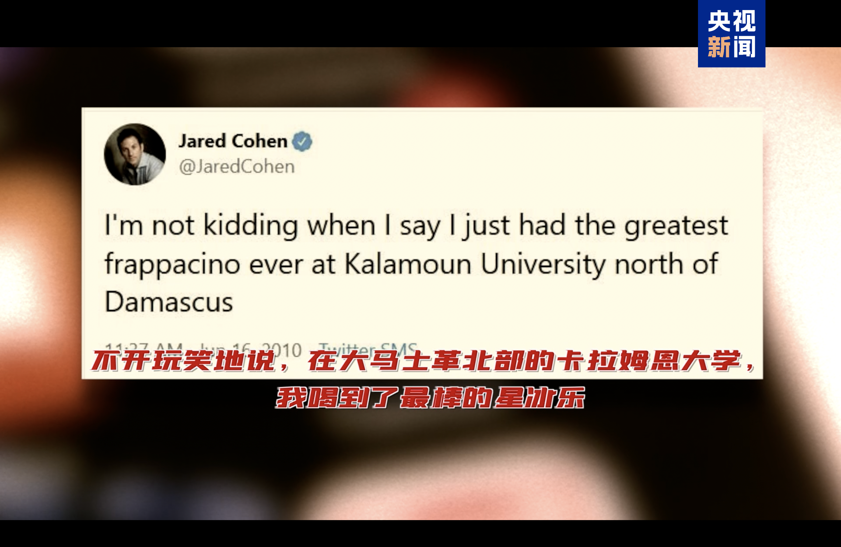 对于此行,他们显得非常满意。贾里德·科恩像游客一样发推特称:“不开玩笑地说,在大马士革北部的卡拉姆恩大学,我喝到了最棒的星冰乐。”