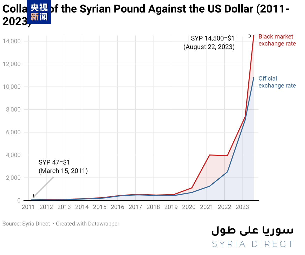 对于正处于关键重建期的叙利亚来说,《凯撒法案》的生效让叙利亚彻底被排除出全球金融和经济体系。其直接影响是,在多年战火中大致稳定的叙利亚镑开始断崖式贬值: