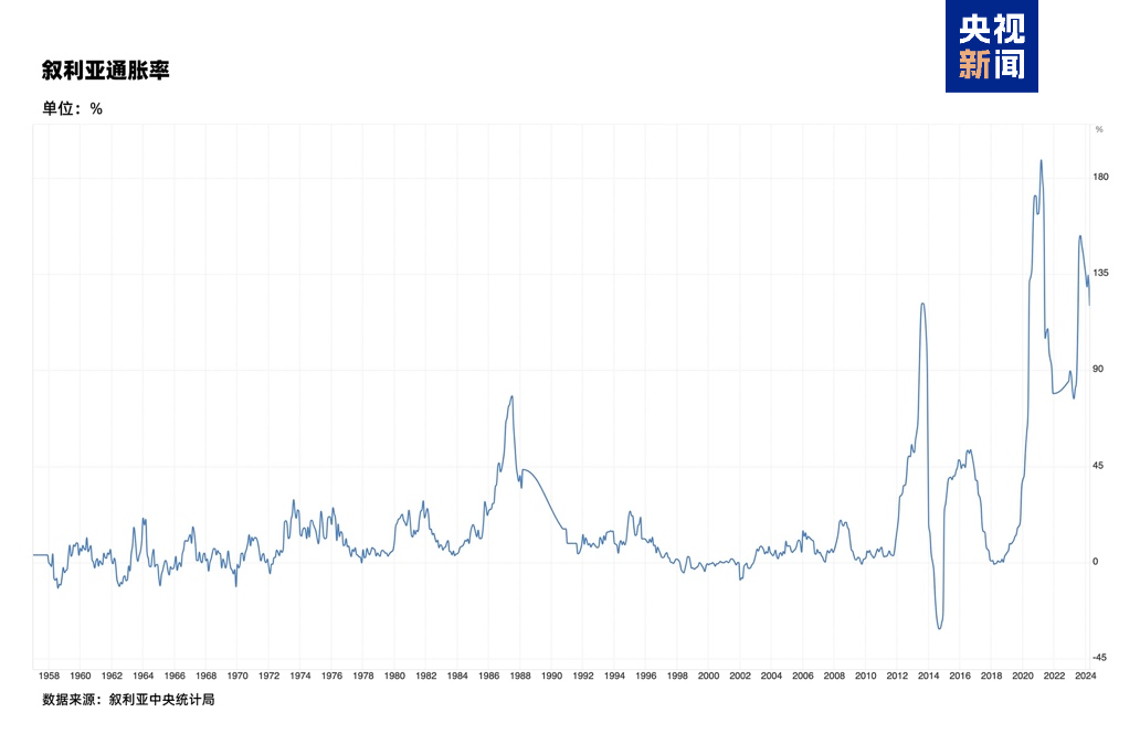 根据叙利亚中央统计局的数据,2021年至2023年,叙利亚国内通胀率都在50%以上。2021年3月达到创纪录的188.40%。