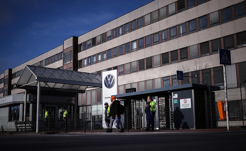 12月20日,德国汉诺威,德国汽车制造商大众汽车商业车间的员工正陆续离开工厂。(视觉中国)