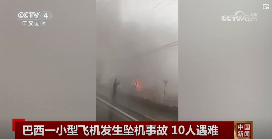 一架小型飞机22日在巴西南部的南里奥格兰德州旅游城市格拉纳多坠毁,致机上10人遇难。(图/中国央视新闻视频截图)
