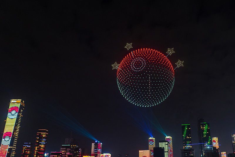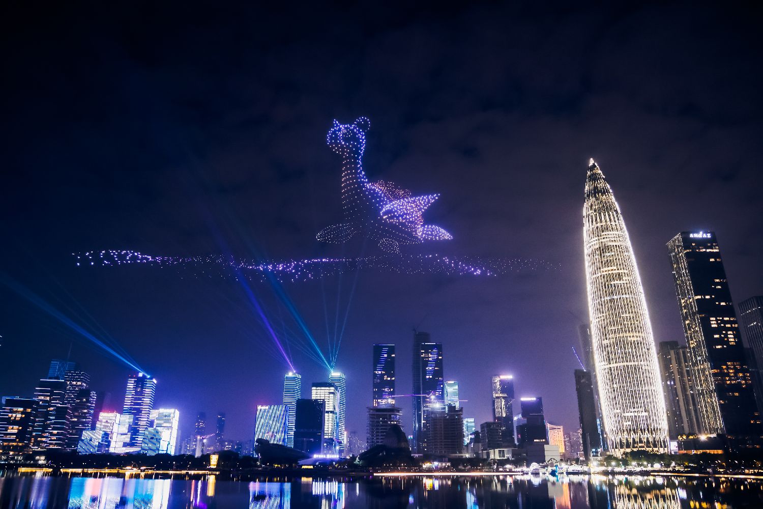 12月22日,广东深圳人才公园,宝可梦深圳大师赛最后一日,当晚,上千架无人机在空中进行了表演。各种宝可梦形象,如皮卡丘,裂空座,拉普拉斯,精灵球,宝可梦卡牌,梦幻等相继组合变化,并在最后打出了明年深圳再相会的标语。深圳人才公园的部分商业楼也同步进行了灯光秀,在灯火交映的夜里给持续了大半个月的宝可梦各种活动画上了圆满句号。(CFP)