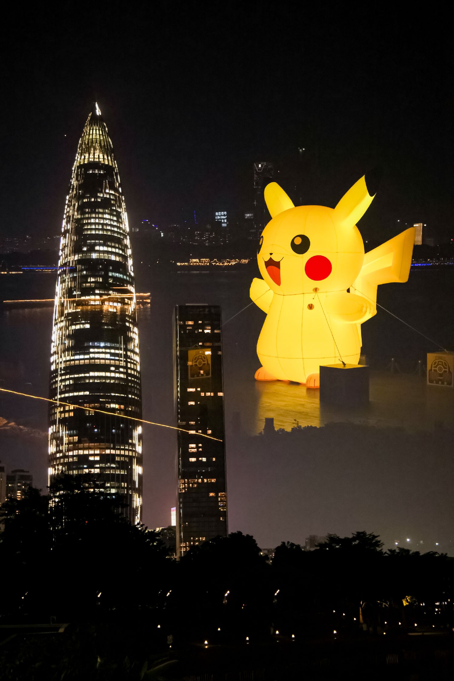 为庆祝深圳大师赛的到来,宝可梦纷纷在深圳大师赛周围出现,皮卡丘气模、卡比兽气模、拉普拉斯气模、杰尼龟气模等纷纷亮相,还有极具特色的人才公园宝可梦主题区。丰富多样的宝可梦打卡点,充满了欢乐和活力。图为巨型皮卡丘气模亮相。(Pokemon宝可梦官方微博)
