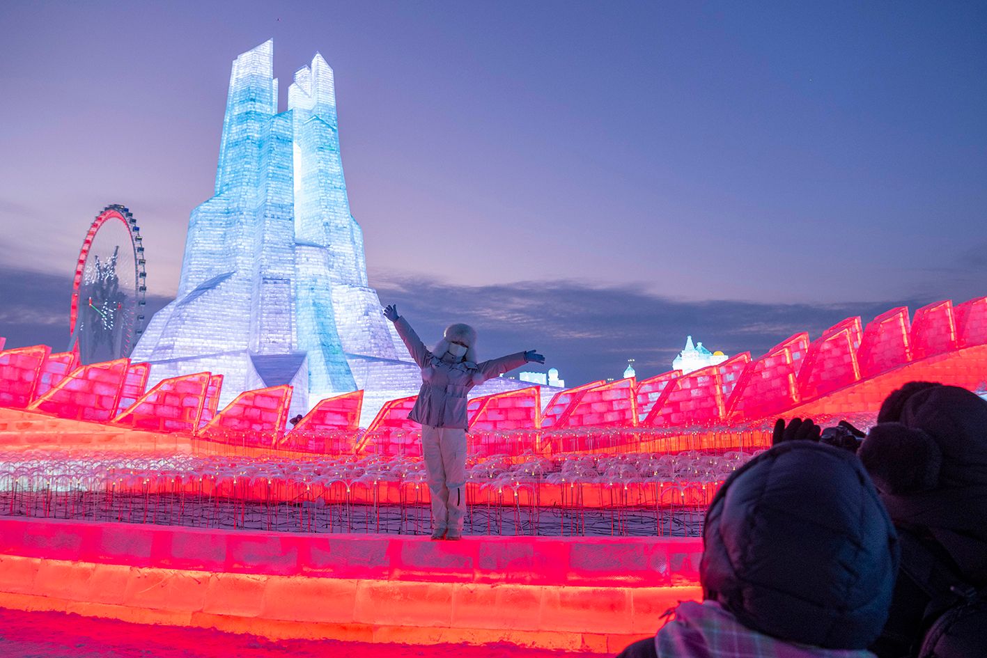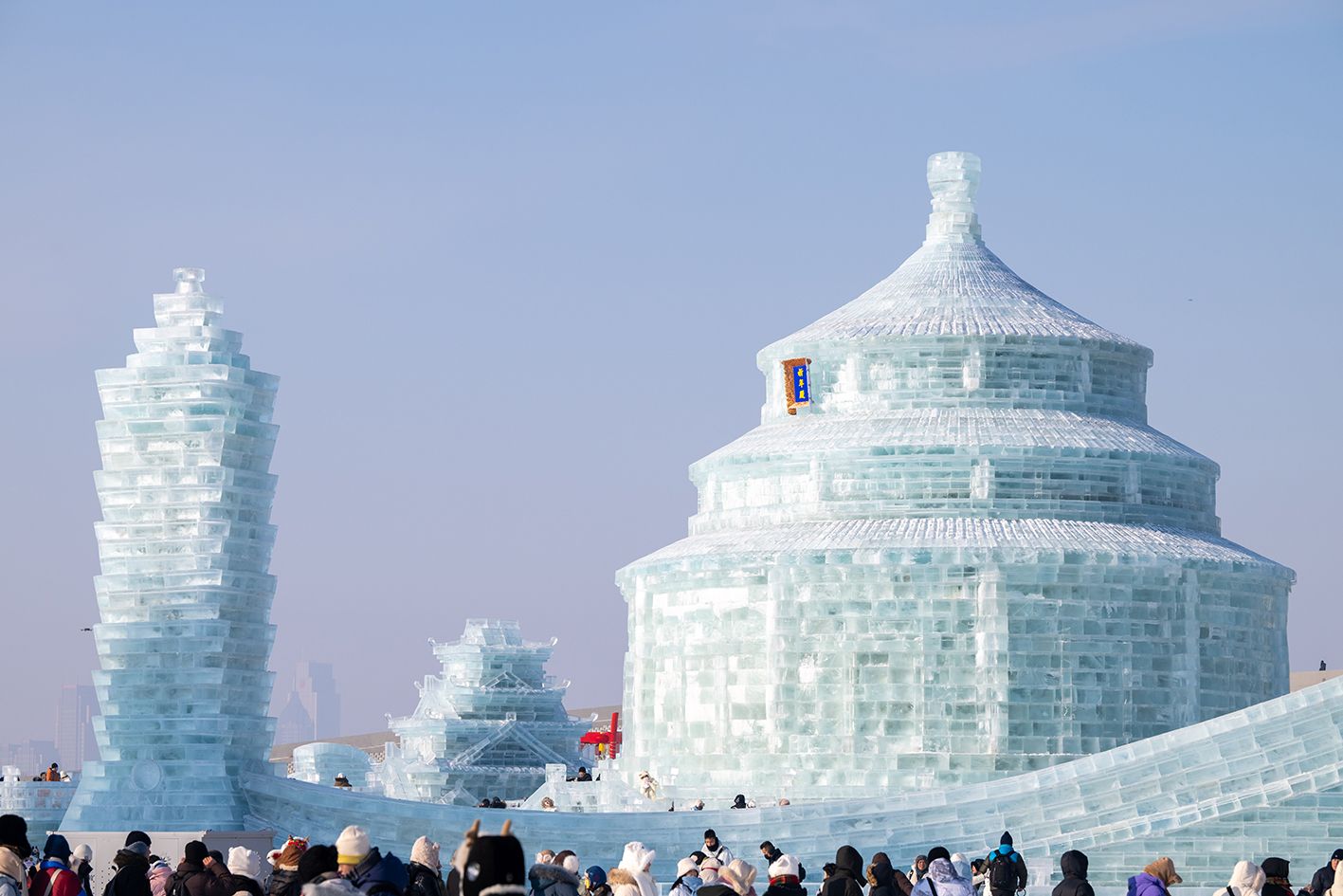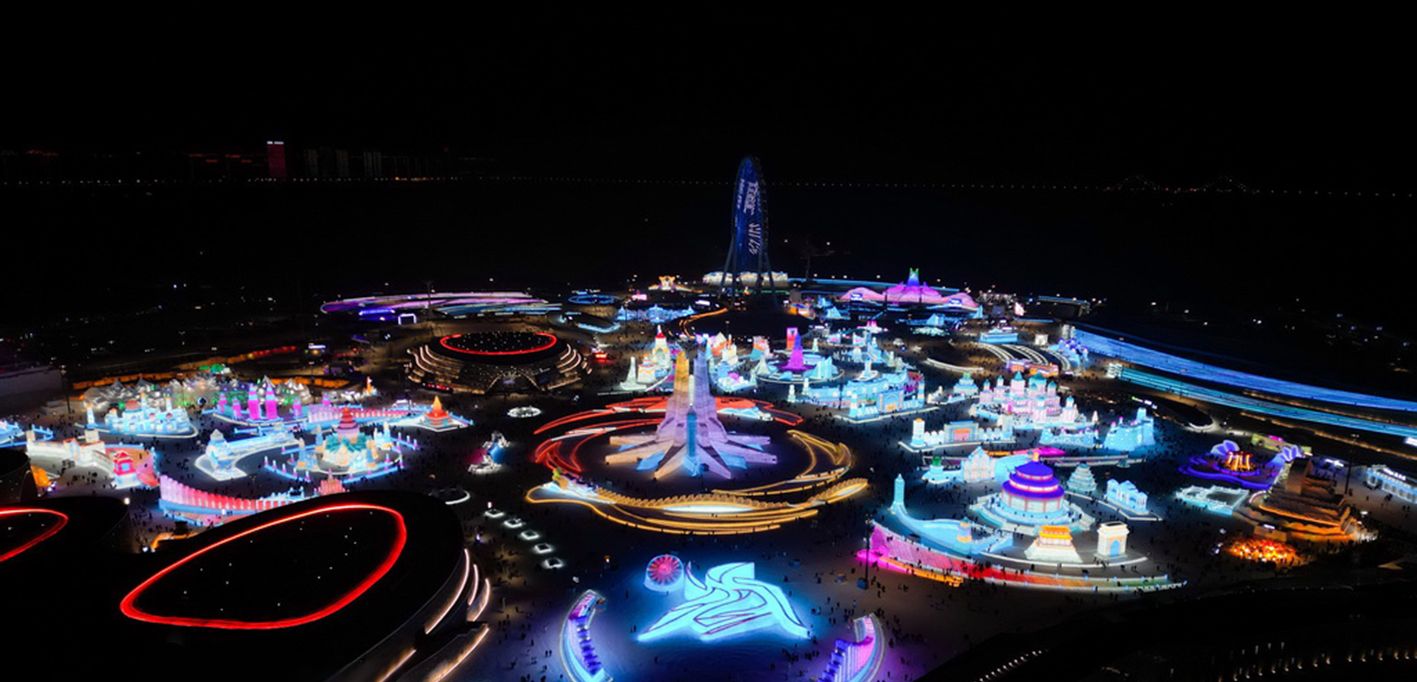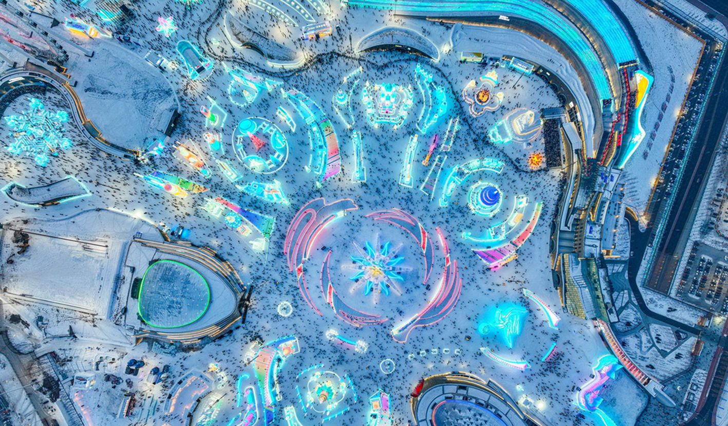 本届冰雪大世界以“冰雪同梦 亚洲同心”为主题,园区整体面积近100万平方米,总用冰用雪量30万立方米。(新华社)