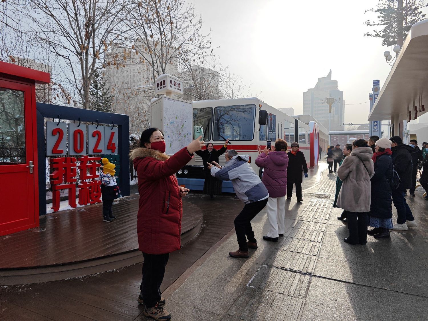 12月24日,市民在乌鲁木齐的八楼主题车站拍照。(图/中新社)