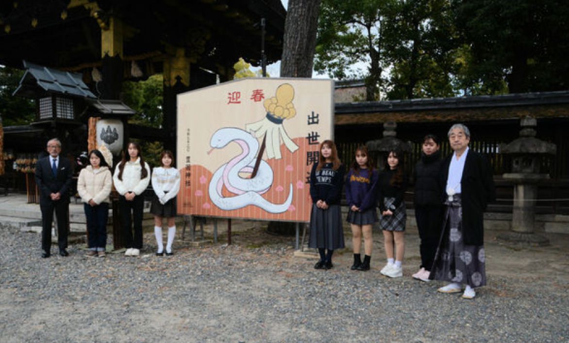 据日本《京都新闻》报道,京都女子大学(京都市东山区)的学生们参与制作的巨大“绘马”被献纳给了该区的丰国神社。该绘马以明年的生肖蛇为主题,画的是微笑的白蛇,营造温馨氛围。