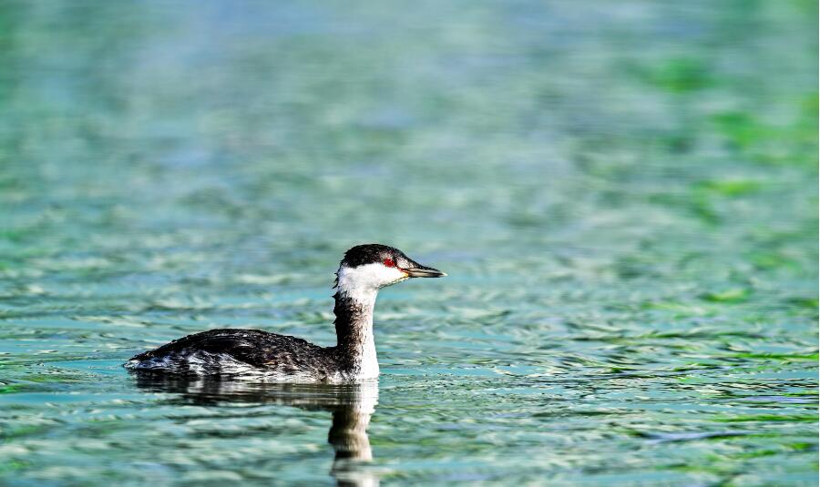 近日,拍鸟爱好者杨福建在江苏徐州云龙湖发现了一只特别的“鸭子”,灰白相间的羽毛油光水滑,但嘴巴又尖又直,一双圆溜溜的眼睛像红宝石一样晶莹剔透。查阅资料后发现,这位“神秘访客”是国家二级保护野生动物角䴙(pì)䴘(tī)。