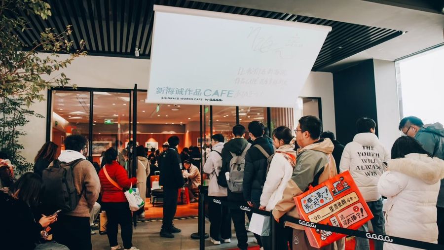 图为粉丝在新海诚作品CAFE店排队。(上海上观新闻)