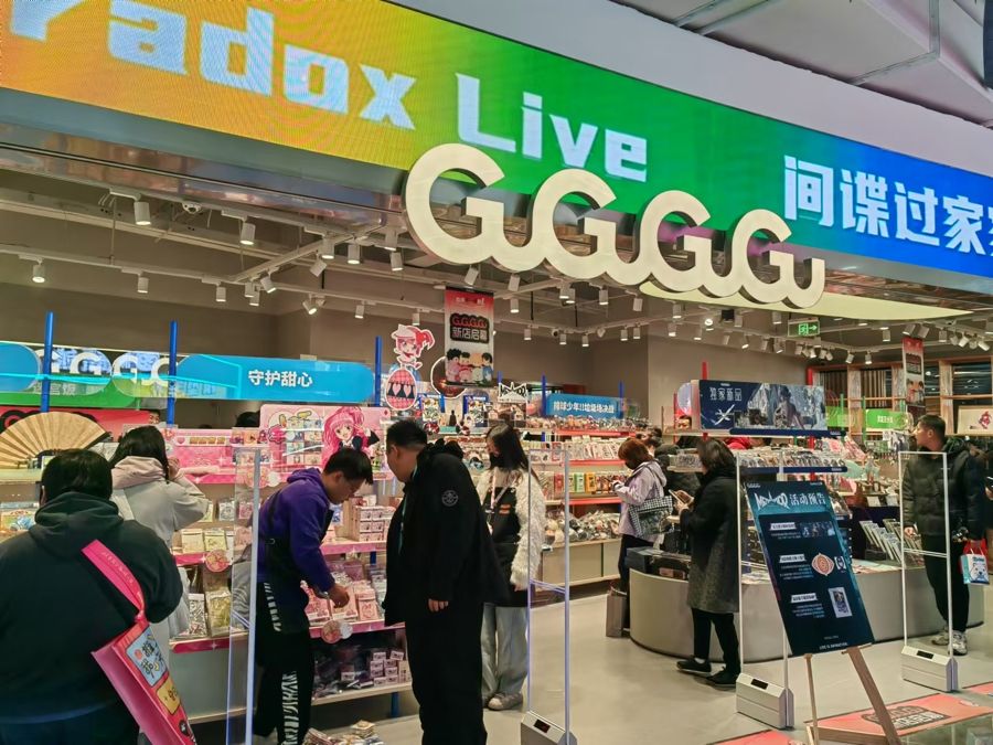 图为百联ZX造趣场。与南京路上的“创趣场”相比,“造趣场”经营面积达到1.9万平方米,不仅空间更大,入驻的业态也更为多元。从地下一层到地上四层,集结了二次元品牌、主题餐饮、书店、社交空间、游戏体验等多维度的消费内容。随之而来的,还有更为丰富的零售品类,除了徽章、卡片、手办等被二次元玩家称为“谷子”的动漫衍生品,还增加了服饰类、文创文具类、美妆造型类等商品及配套服务。(上海上观新闻)