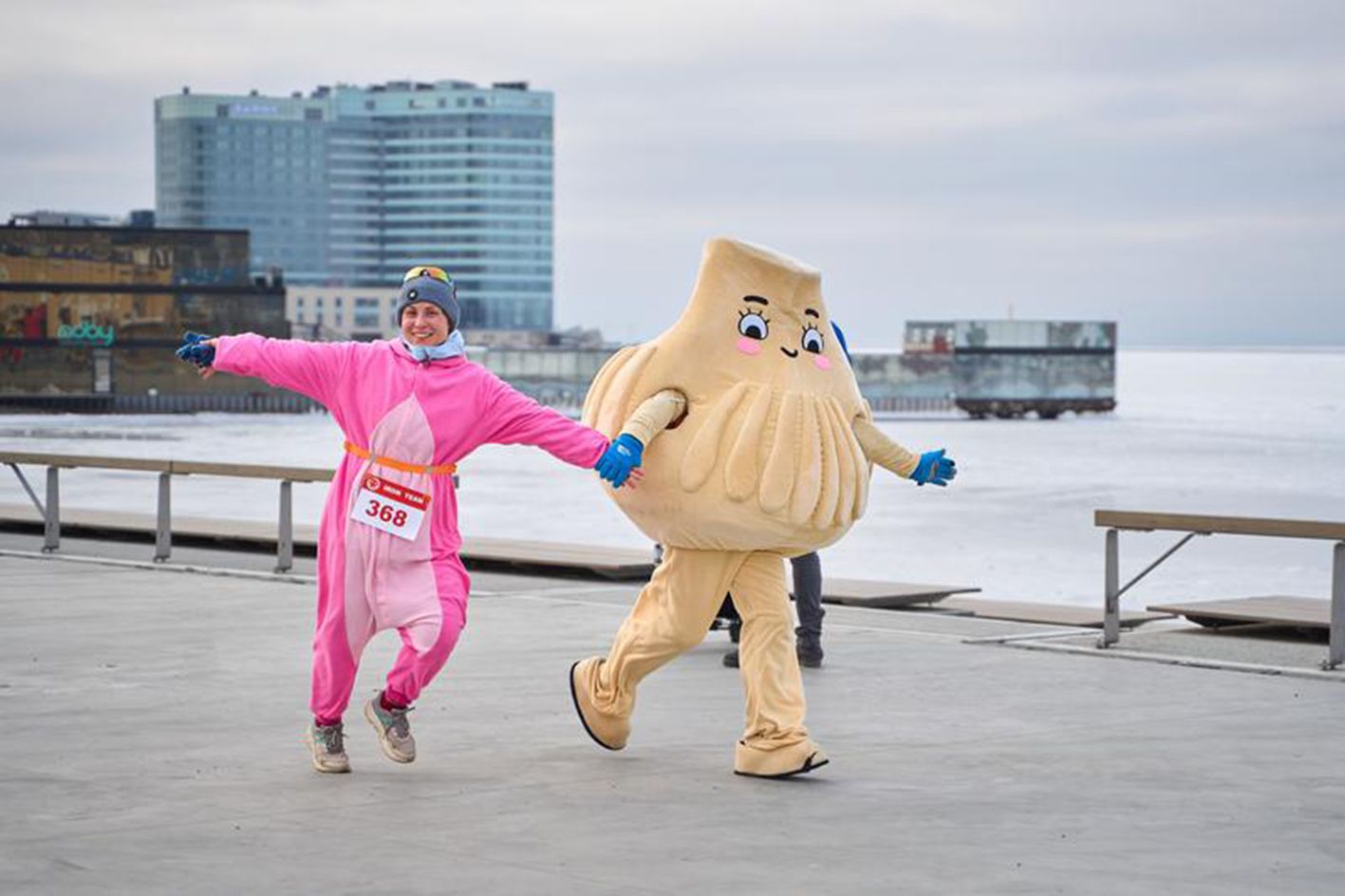 12月30日,在俄罗斯符拉迪沃斯托克,人们参加化妆跑活动。俄罗斯符拉迪沃斯托克30日举行传统的化妆跑活动,迎接即将到来的新年。(新华社)