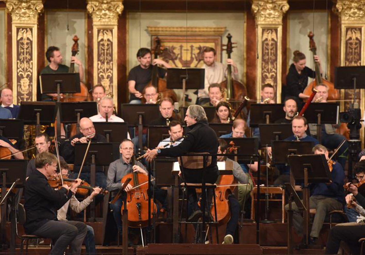 12月28日,在奥地利首都维也纳,指挥家穆蒂和维也纳爱乐乐团进行彩排。当日,2025年维也纳新年音乐会新闻发布会在奥地利首都维也纳举行。发布会后,指挥家穆蒂和维也纳爱乐乐团在金色大厅为2025年维也纳新年音乐会进行彩排。(新华社)