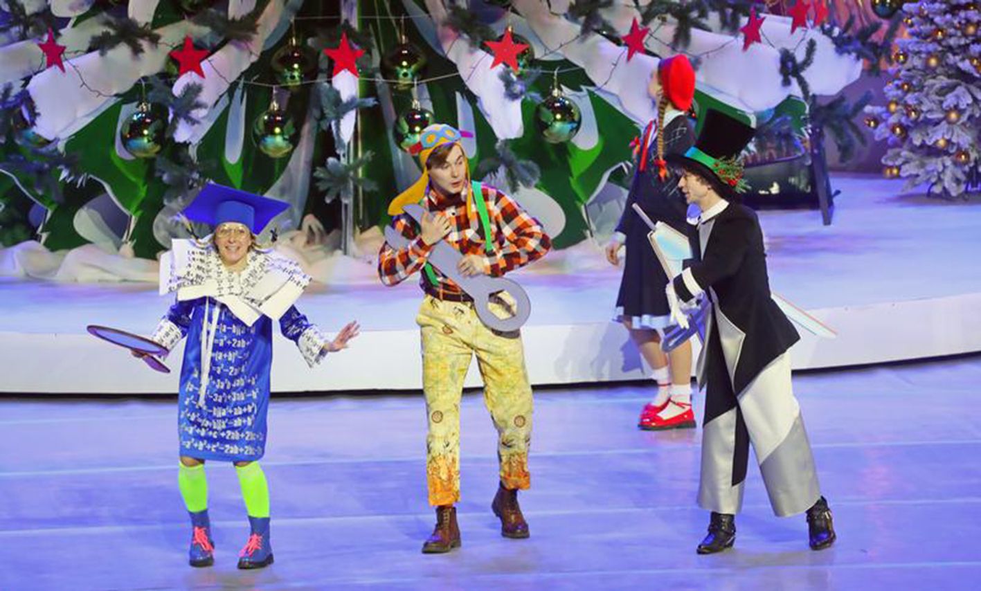 12月27日,在白俄罗斯首都明斯克的共和国宫,演员在儿童新年庆祝活动上表演节目。白俄罗斯27日在首都明斯克的共和国宫举办儿童新年庆祝活动。来自白俄罗斯各个地区的2000余名儿童前来参加,观看精彩表演。(新华社)