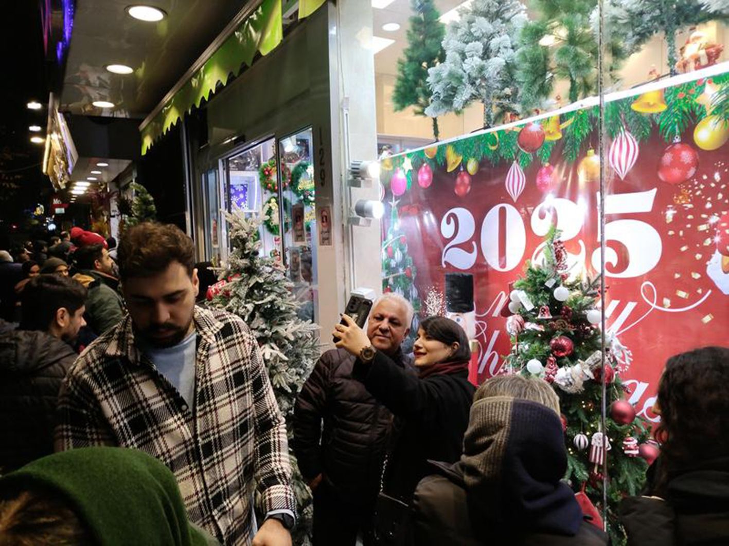 12月27日,人们在伊朗德黑兰一家商店橱窗里的“2025”标识前拍照。2025年即将到来,伊朗德黑兰迎新年气氛渐浓。(新华社)